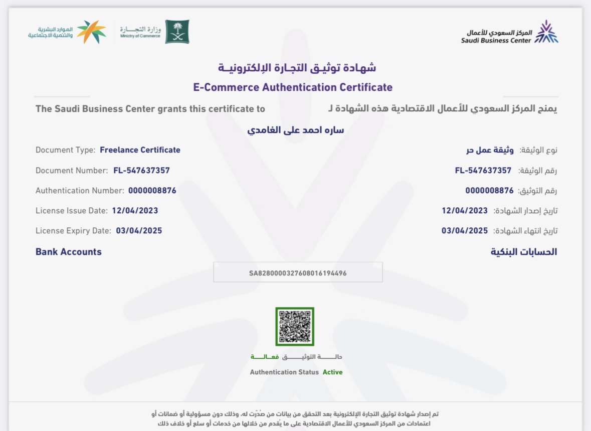 شهادة توثيق المتجر الاكتروني